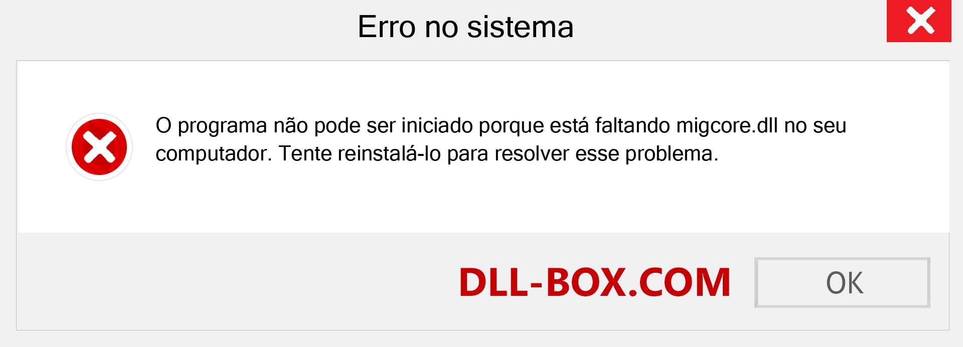 1. O programa não pode ser iniciado porque está faltando migcore.dll do seu computador. Tente reinstalar o programa para resolver este problema.